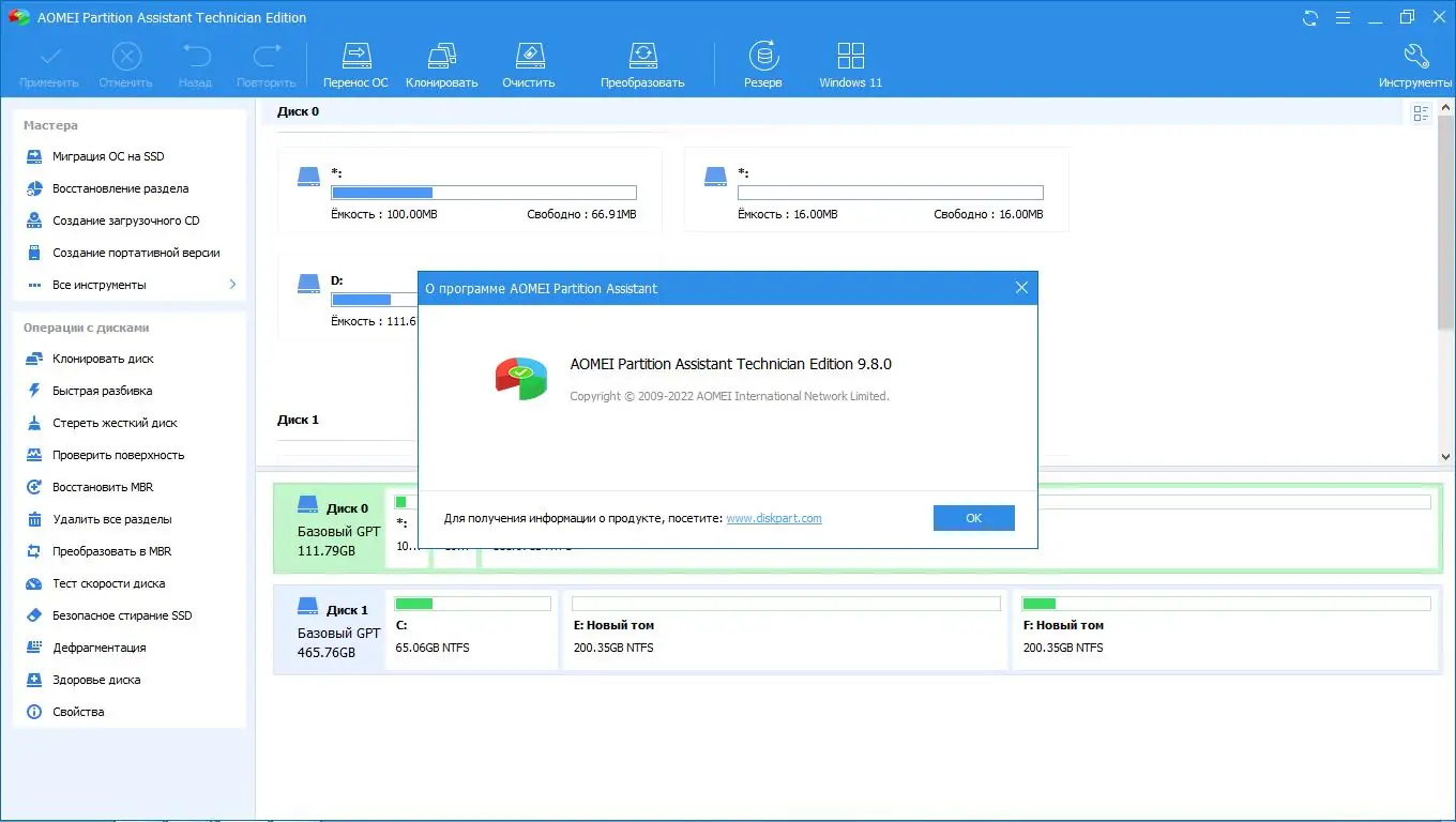 AOMEI Partition Assistant — это системная утилита, разработанная для комплексного управления жёсткими дисками и их разделами. Она ориентирована как на обычных пользователей, так и на системных администраторов, обеспечивая интуитивный интерфейс и мощные инструменты для обслуживания накопителей. Программа совместима с различными типами дисков и файловых систем, включая NTFS, FAT32, Ext2/Ext3 и другие. Она позволяет выполнять операции без потери данных, что особенно важно при изменении структуры диска.