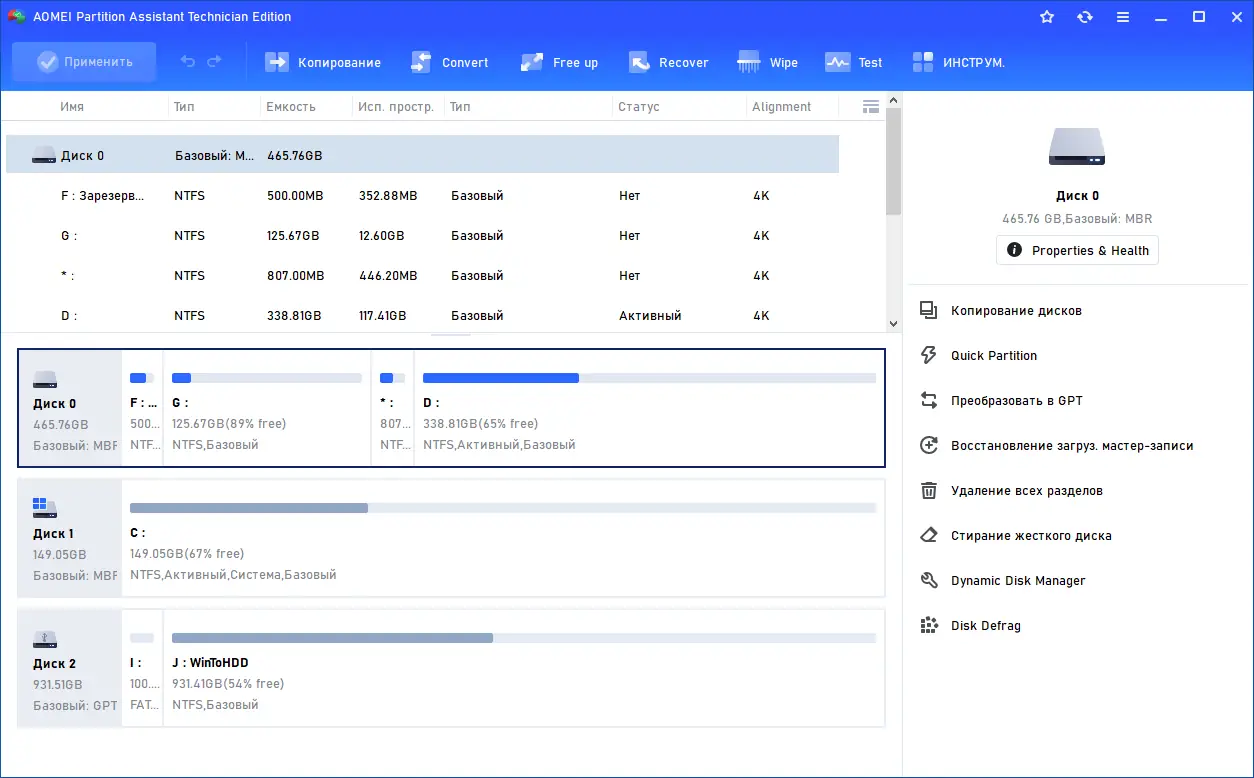 Программа AOMEI Partition Assistant предоставляет полный набор инструментов для управления разделами жёсткого диска и оптимизации работы накопителей. Она поддерживает операции с MBR и GPT, позволяет изменять размеры разделов без потери данных и клонировать диски. Решение подходит как для домашних пользователей, так и для системных администраторов.