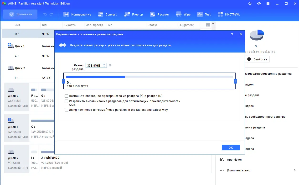 Работа с AOMEI Partition Assistant