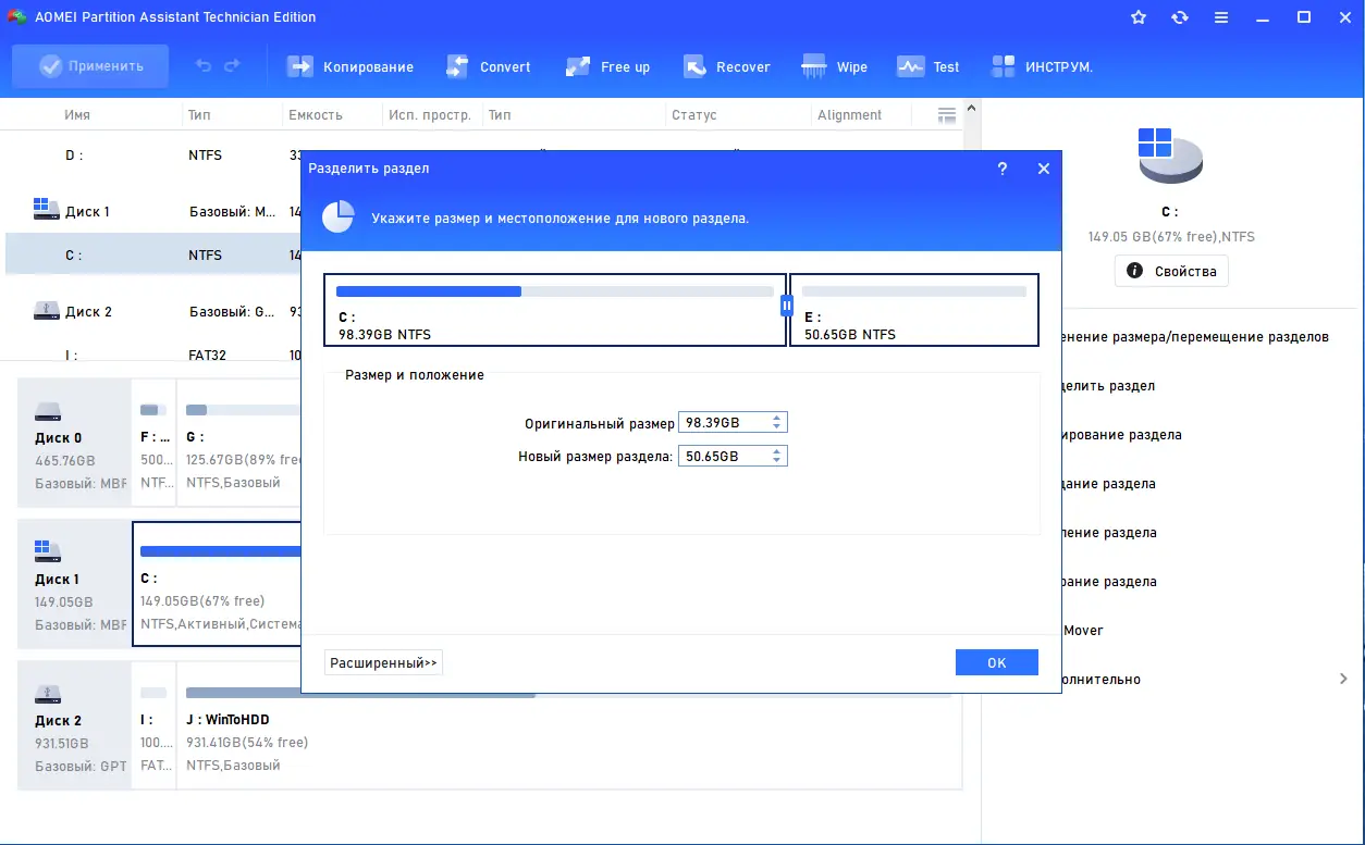 Работа с AOMEI Partition Assistant