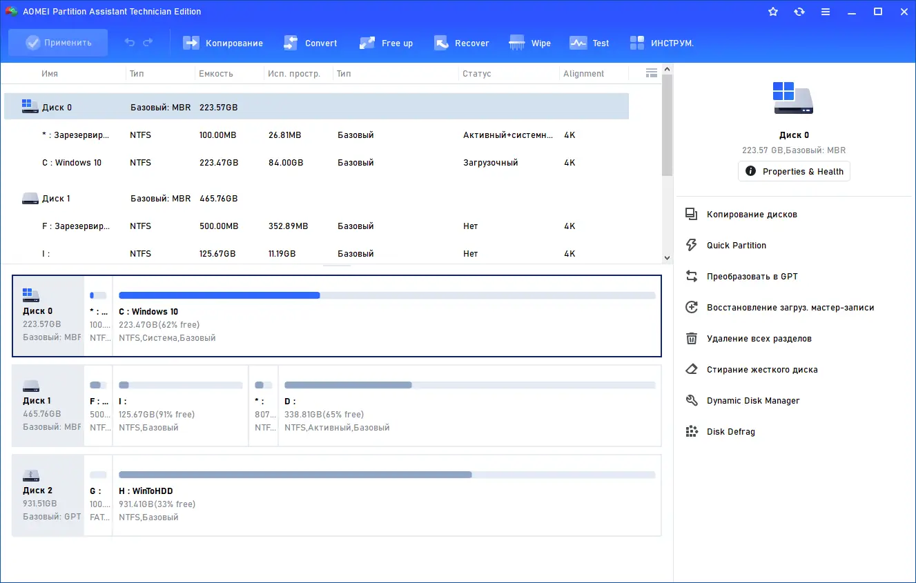 Программа AOMEI Partition Assistant предоставляет комплексное решение для управления разделами жёсткого диска, позволяя изменять размеры, копировать, клонировать и восстанавливать разделы без потери данных. Инструмент поддерживает как базовые, так и расширенные операции с дисками, включая миграцию ОС на SSD, конвертацию между GPT и MBR, а также работу с динамическими и Linux-разделами. Решение подходит для пользователей, стремящихся оптимизировать структуру дисков и повысить производительность системы.