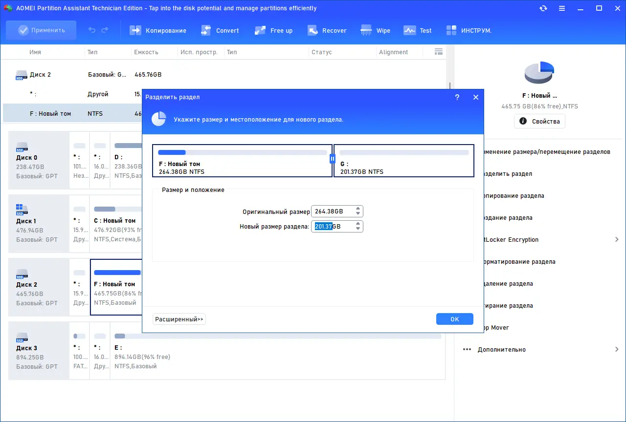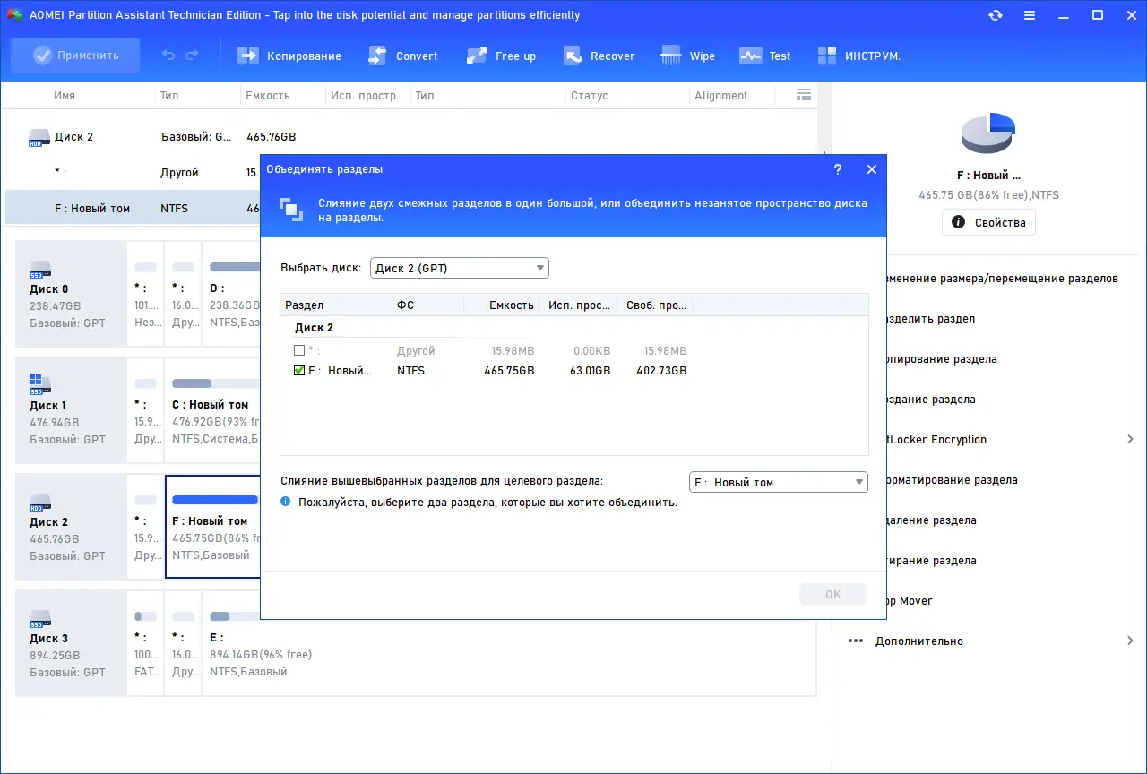 Работа с AOMEI Partition Assistant