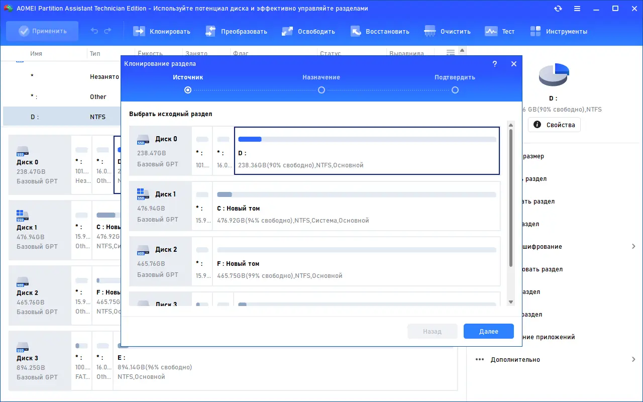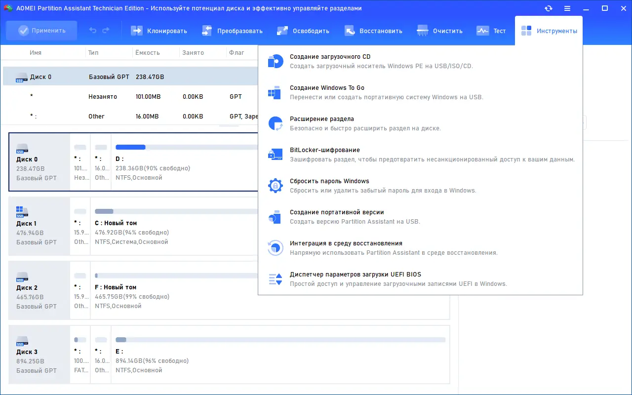 Работа с AOMEI Partition Assistant