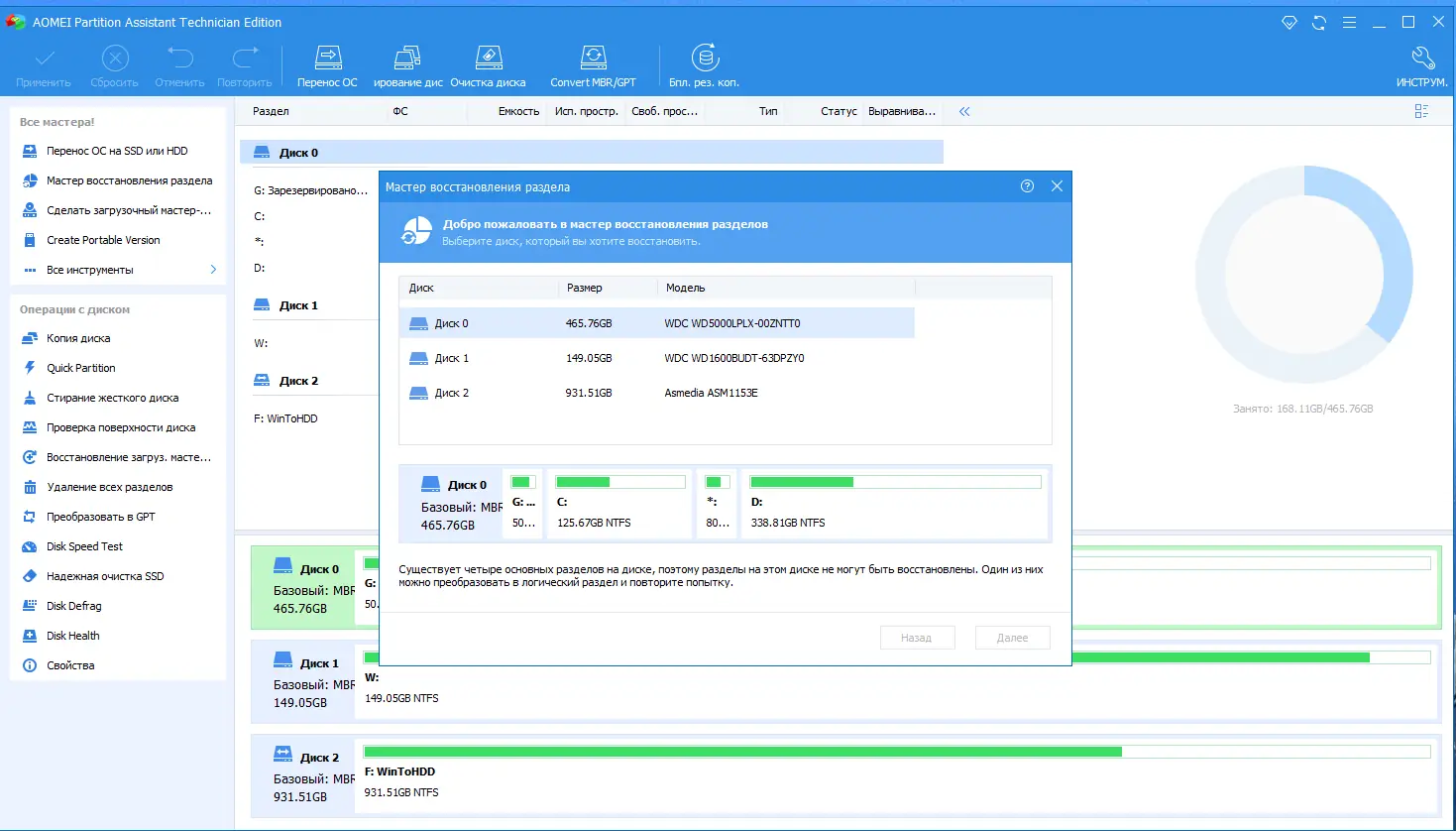 - Возможность восстановления потерянных разделов и перезаписи MBR для восстановления загрузки.