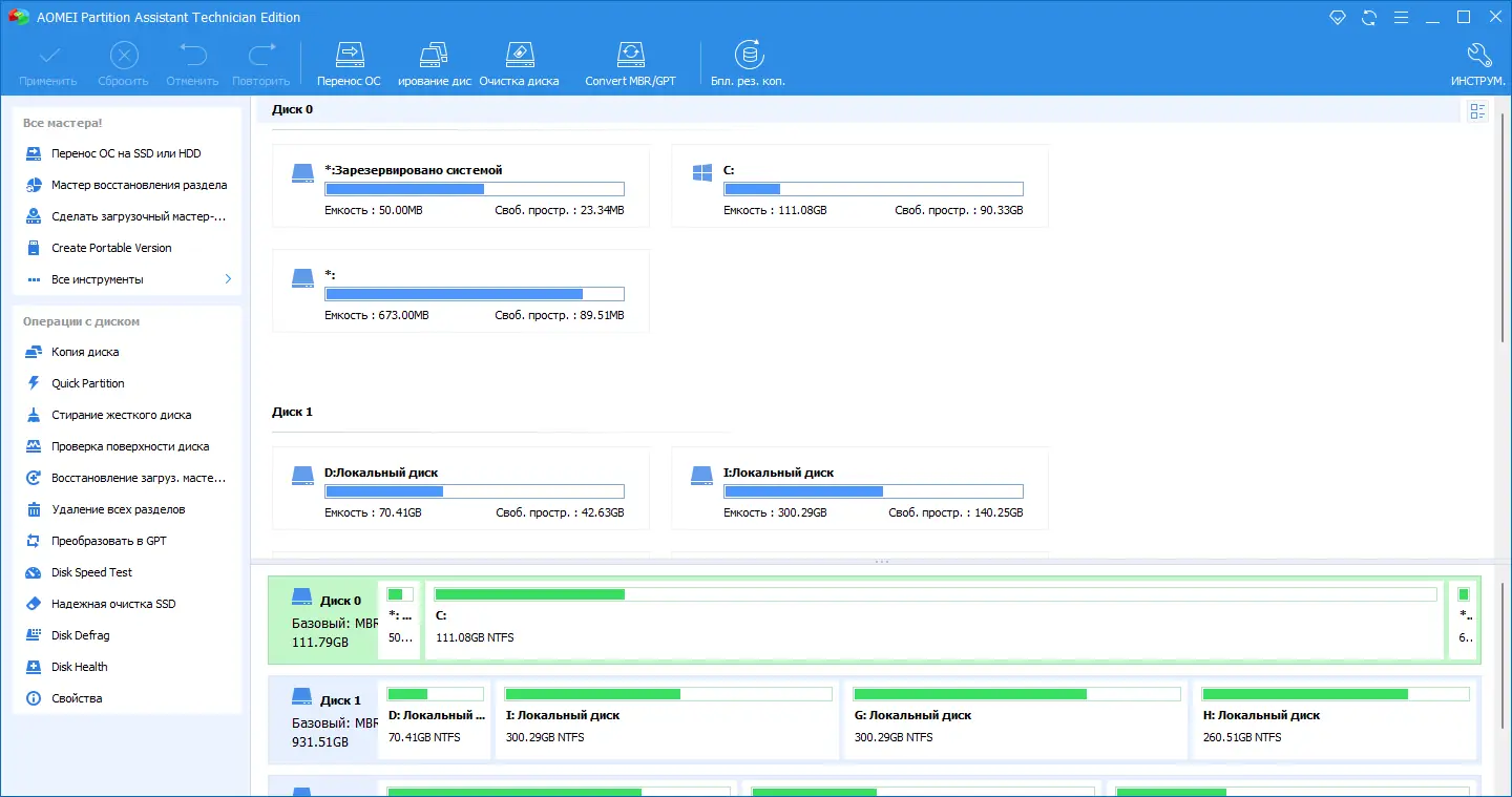 Работа с AOMEI Partition Assistant