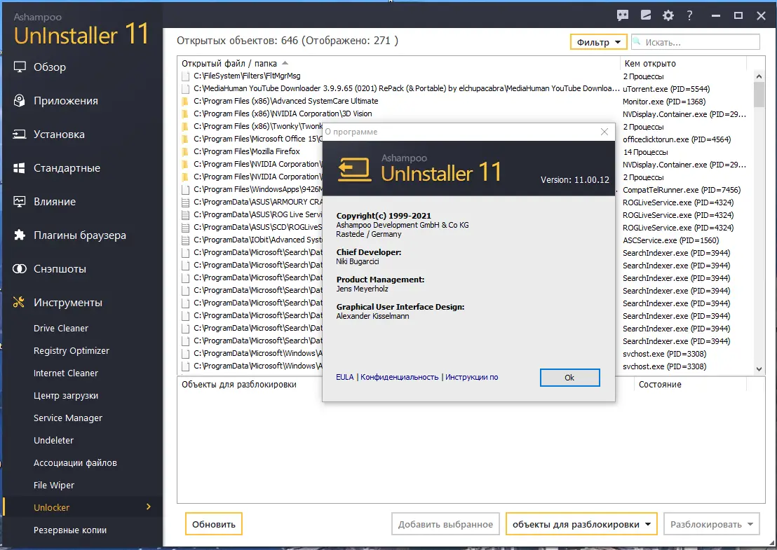 - Технология углублённой очистки эффективно удаляет остатки программ даже после неконтролируемых установок