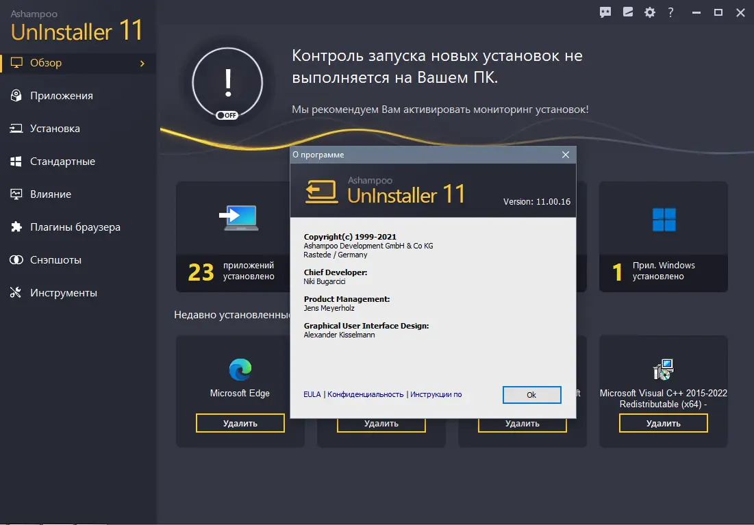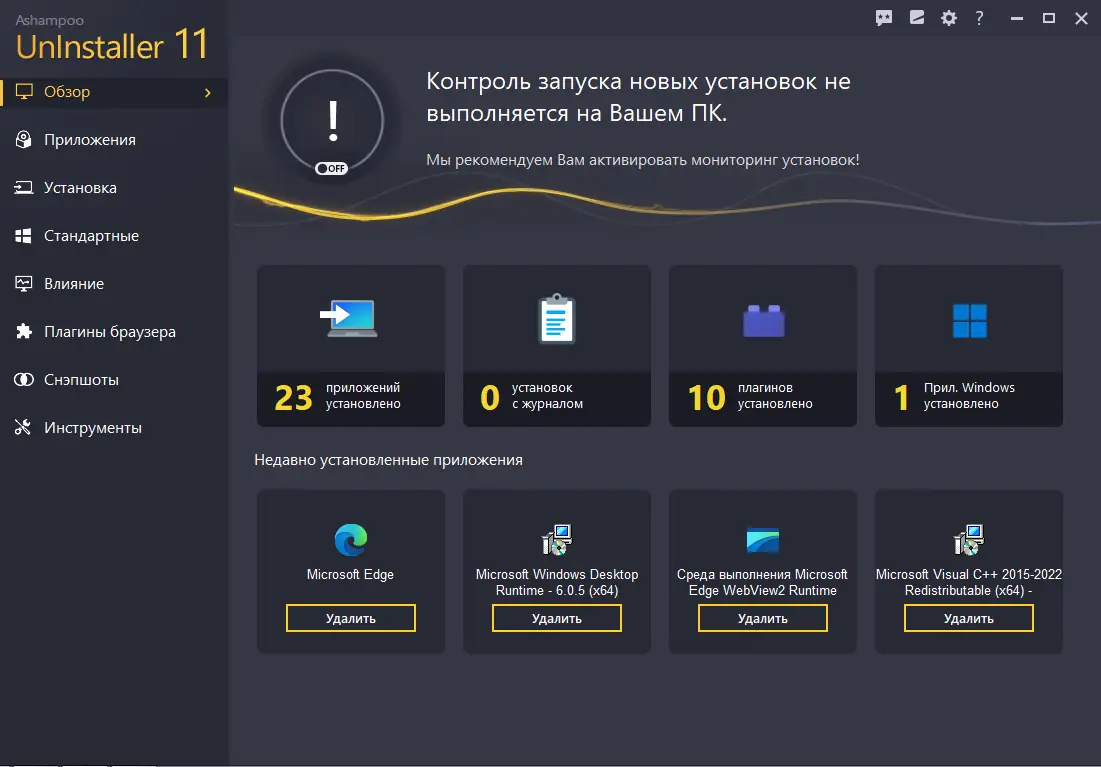 Ashampoo UnInstaller — это мощная утилита для полного и безопасного удаления программ с компьютера. Программа отслеживает все изменения в системе, обеспечивая чистое удаление до последнего байта, включая файлы, записи реестра и вредоносные вложения. Благодаря технологии моментальных снимков и глубокой очистки, она превосходит стандартные средства деинсталляции.