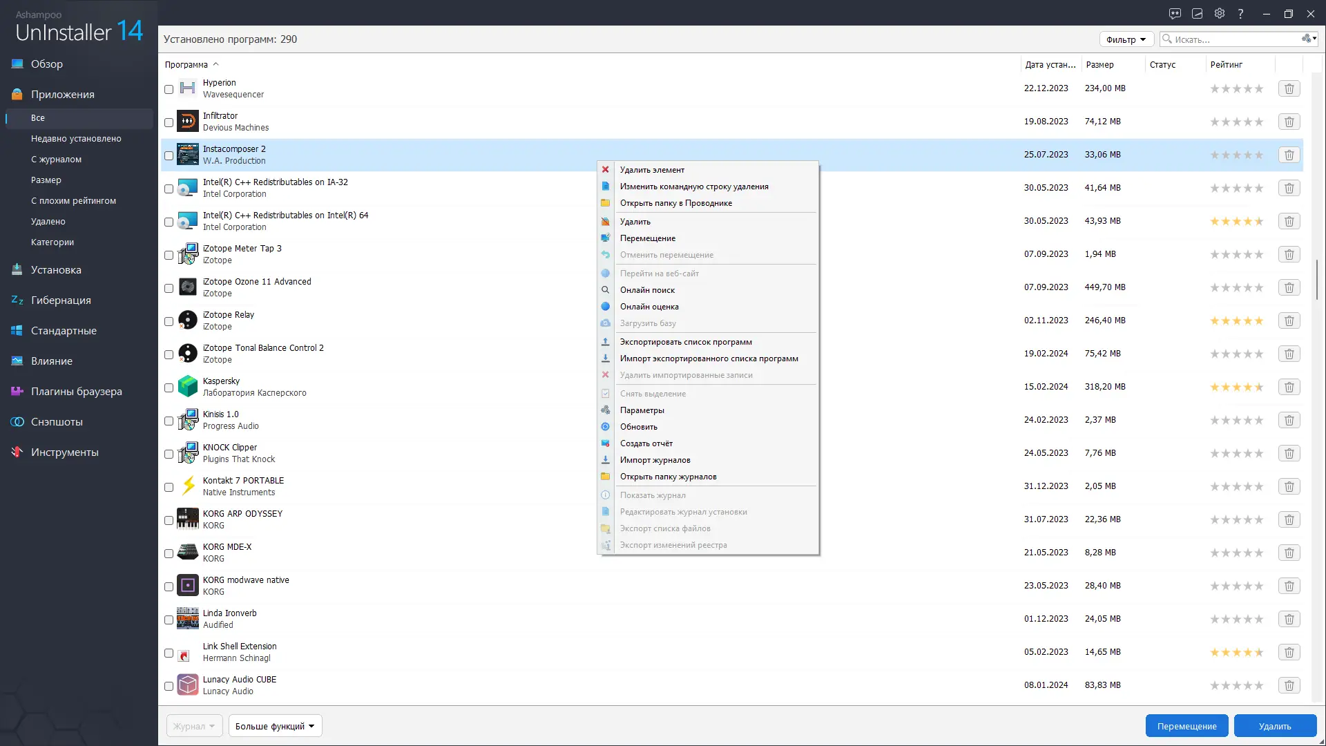 Ashampoo UnInstaller — это мощная утилита для полного контроля над программами на компьютере. Она обеспечивает чистое удаление приложений, перемещение установленных программ между дисками и глубокую очистку системы от остатков программ и мусора. Программа поддерживает современные версии Windows и предлагает расширенные инструменты для оптимизации системы.
