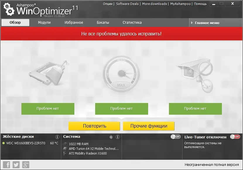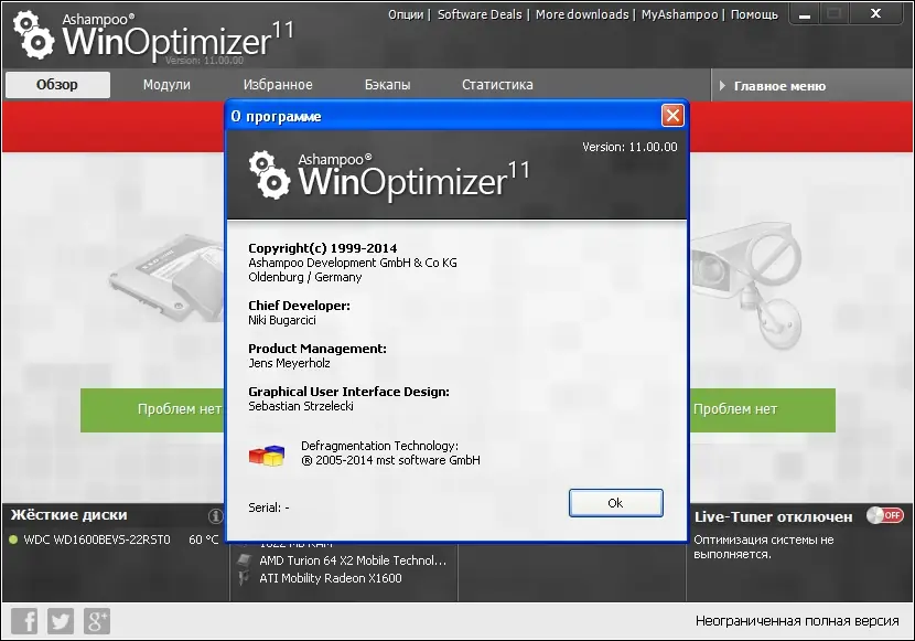 Работа с Ashampoo WinOptimizer