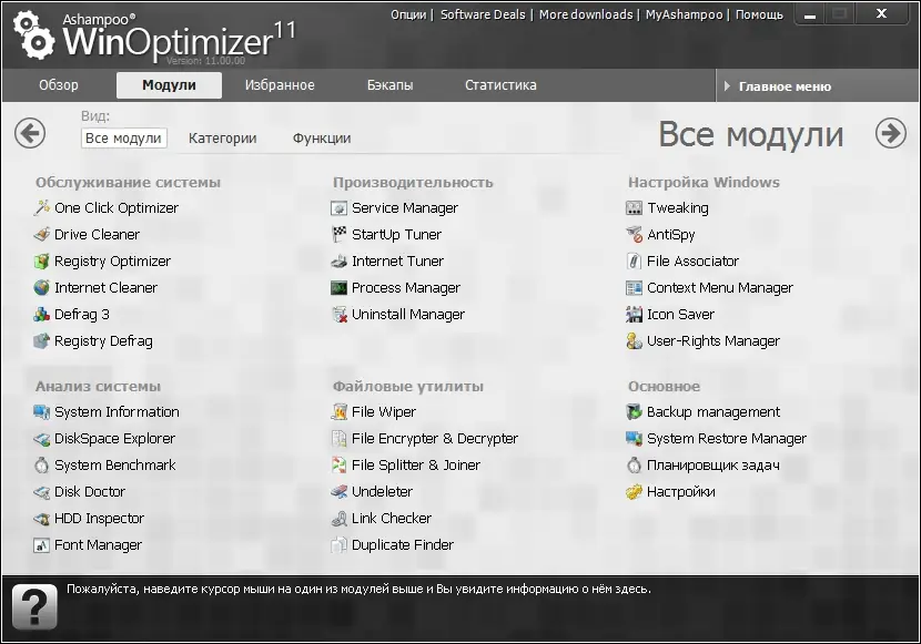 Программа представляет собой универсальный набор инструментов, ориентированных на улучшение стабильности и скорости работы Windows. Ashampoo WinOptimizer 11 переработана на основе усовершенствованных алгоритмов ядра, что позволило снизить нагрузку на процессор и оперативную память при одновременном повышении эффективности всех модулей. Каждая функция адаптирована под современные версии операционной системы, включая Windows 11, и поддерживает работу как на 32-, так и на 64-битных системах.