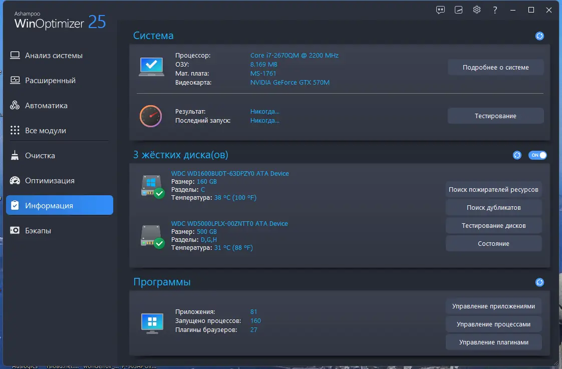 Работа с Ashampoo WinOptimizer