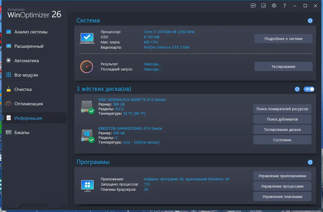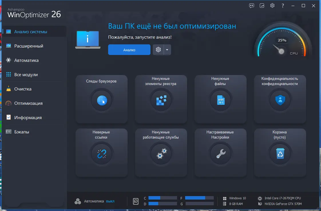 Как пользоваться Ashampoo WinOptimizer