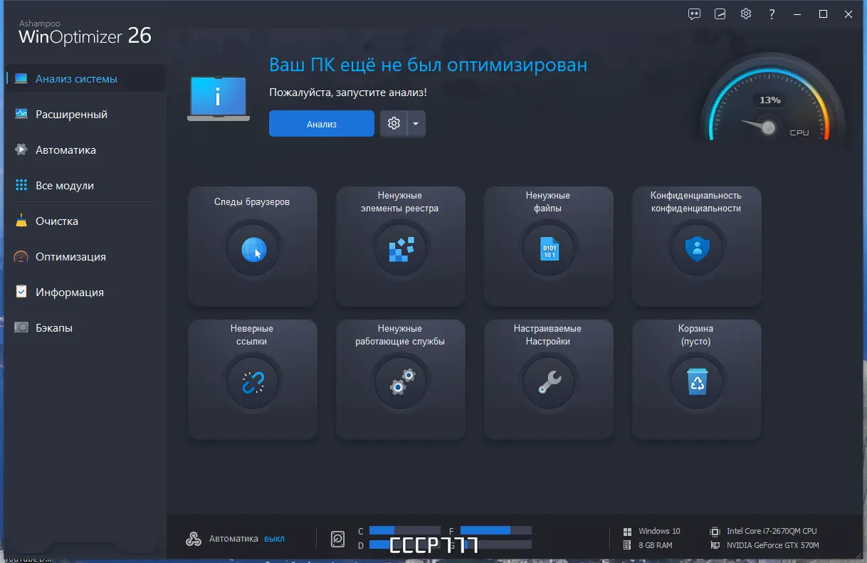 Как пользоваться Ashampoo WinOptimizer