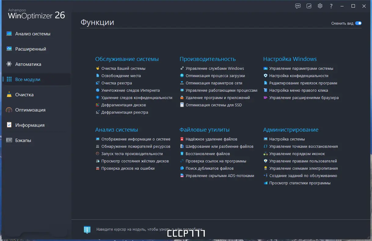 Программа объединяет более 30 инструментов в едином интерфейсе, заменяя собой множество сторонних утилит.