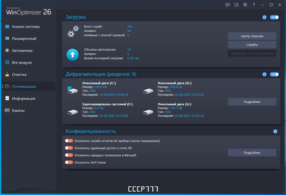 Каждый инструмент в Ashampoo WinOptimizer работает автономно, но при этом интегрирован в единую экосистему, что обеспечивает согласованность и безопасность всех изменений.