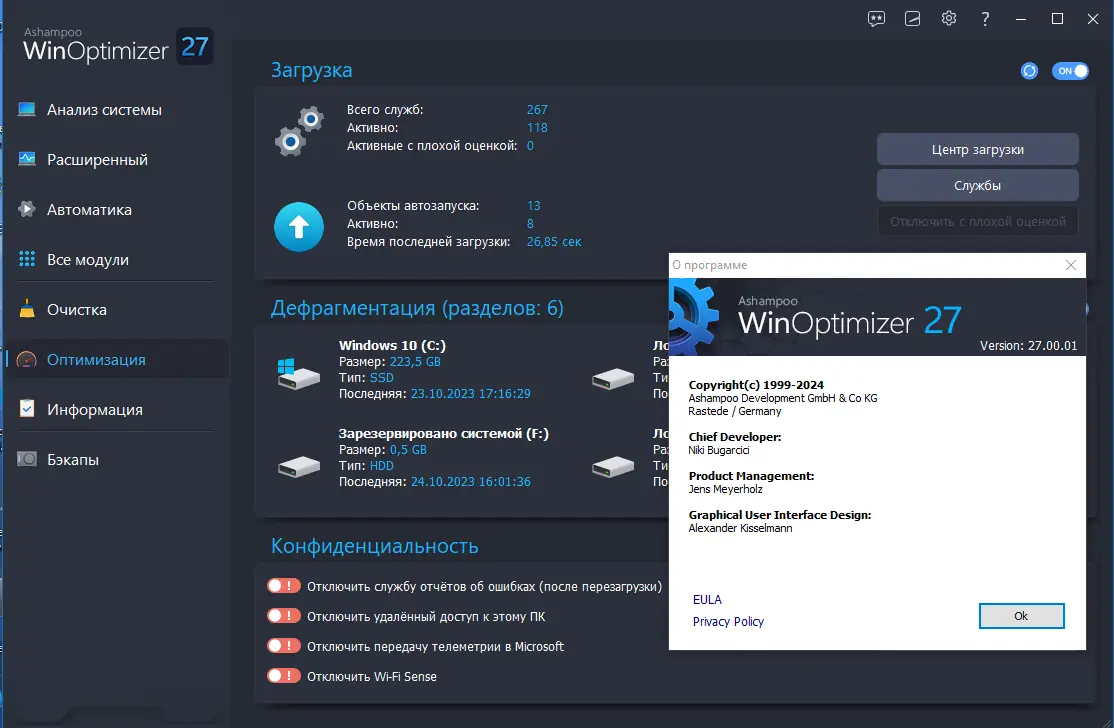 Описание Ashampoo WinOptimizer