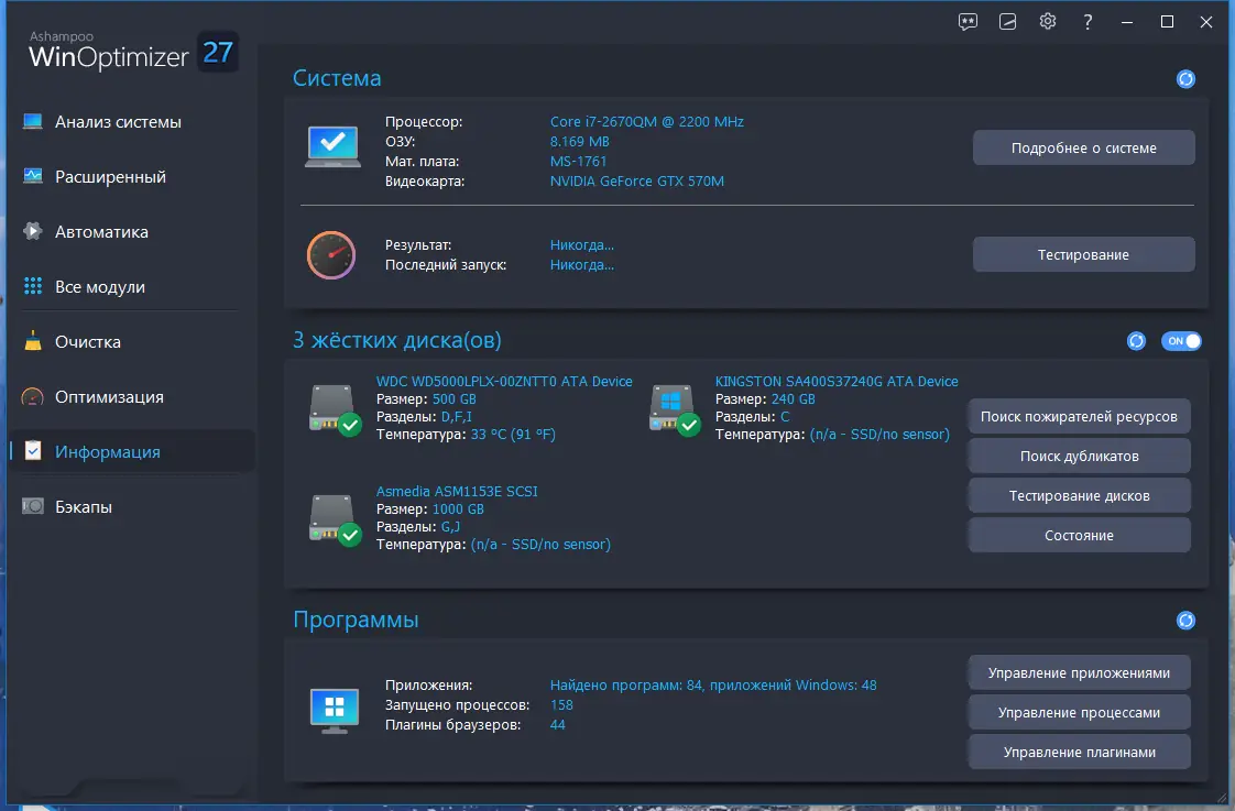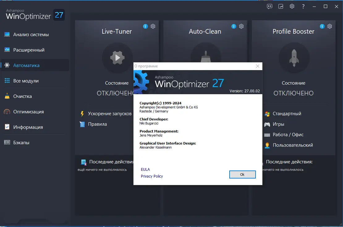 Работа с Ashampoo WinOptimizer
