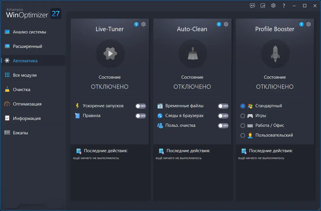 Каждый модуль Ashampoo WinOptimizer работает с высокой точностью, минимизируя риски повреждения системы и обеспечивая стабильность после оптимизации.