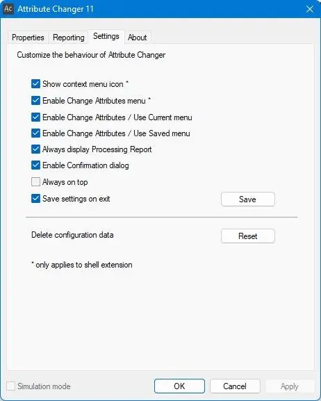 Attribute Changer — это компактная утилита для изменения атрибутов файлов и папок в операционной системе Windows. Программа интегрируется в контекстное меню проводника, позволяя быстро настраивать свойства элементов без необходимости перехода в дополнительные окна или использование командной строки.