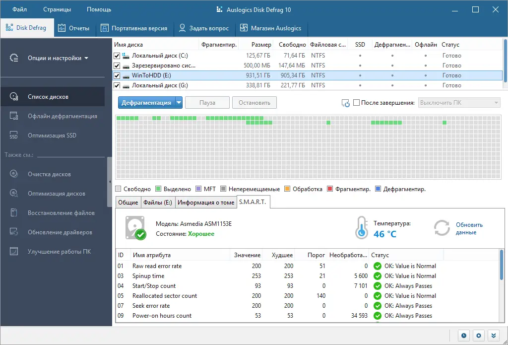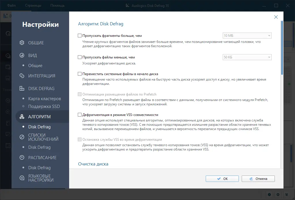 Работа с Auslogics Disk Defrag