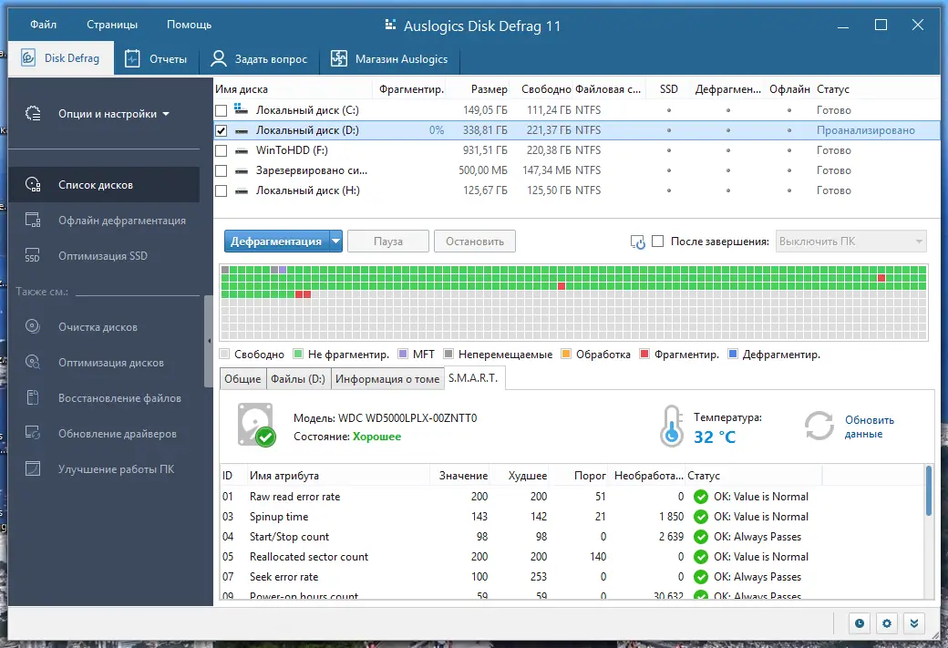 Регулярное использование дефрагментатора помогает не только ускорить систему, но и продлить срок службы накопителя за счёт снижения механической нагрузки.