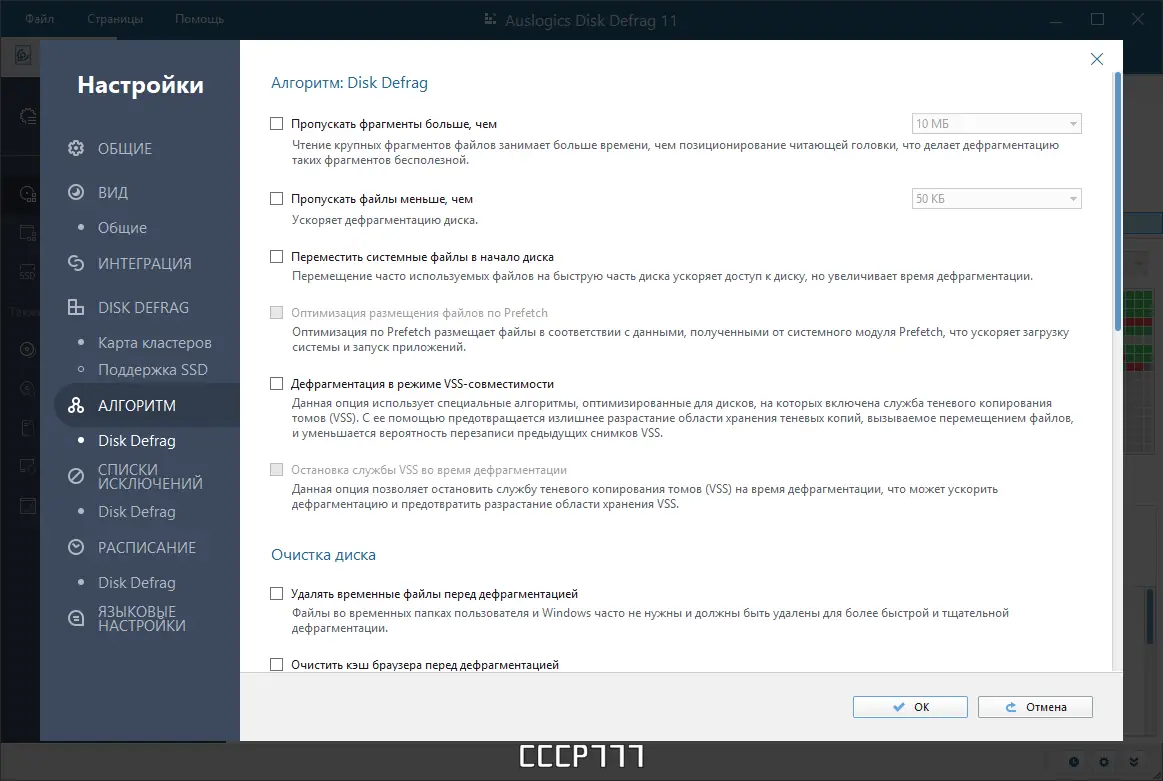 - Функция предотвращения фрагментации, которая минимизирует появление разрозненных файлов в будущем