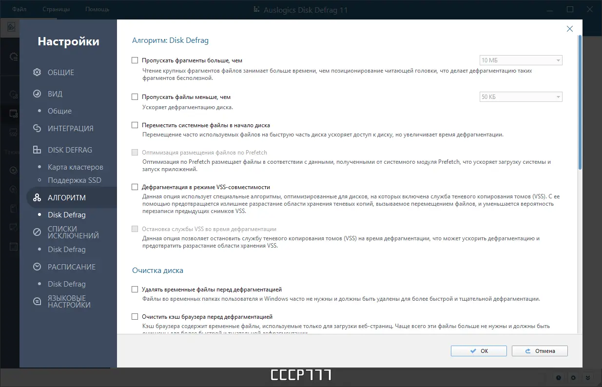 - Имеет встроенную функцию предотвращения фрагментации, что снижает необходимость в частых ручных запусках.
