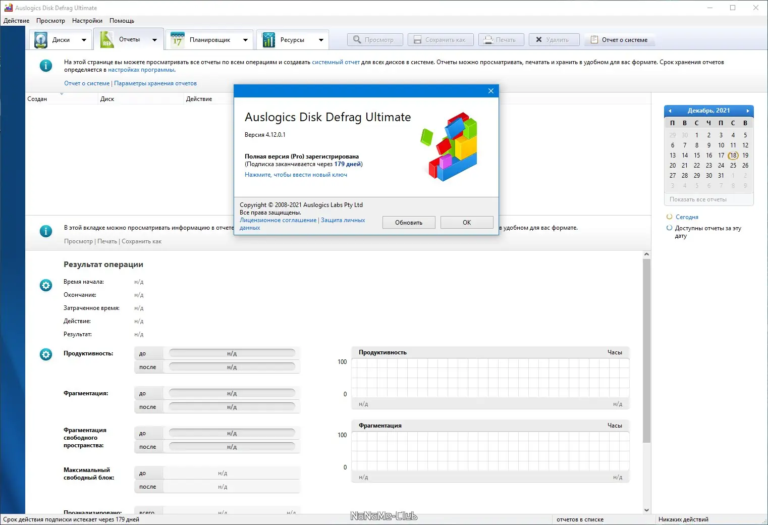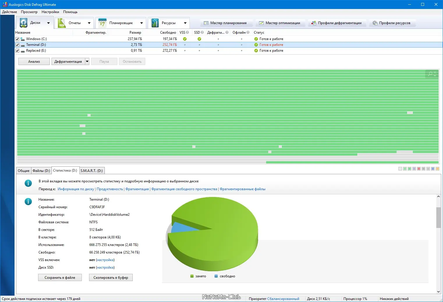 - Оснащена функцией мониторинга производительности, отслеживающей изменения скорости диска до и после обработки.
