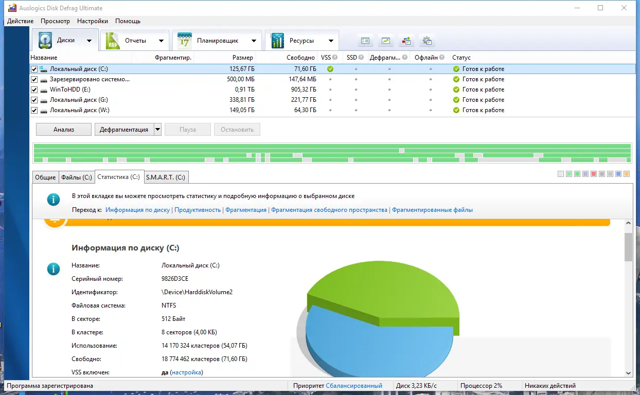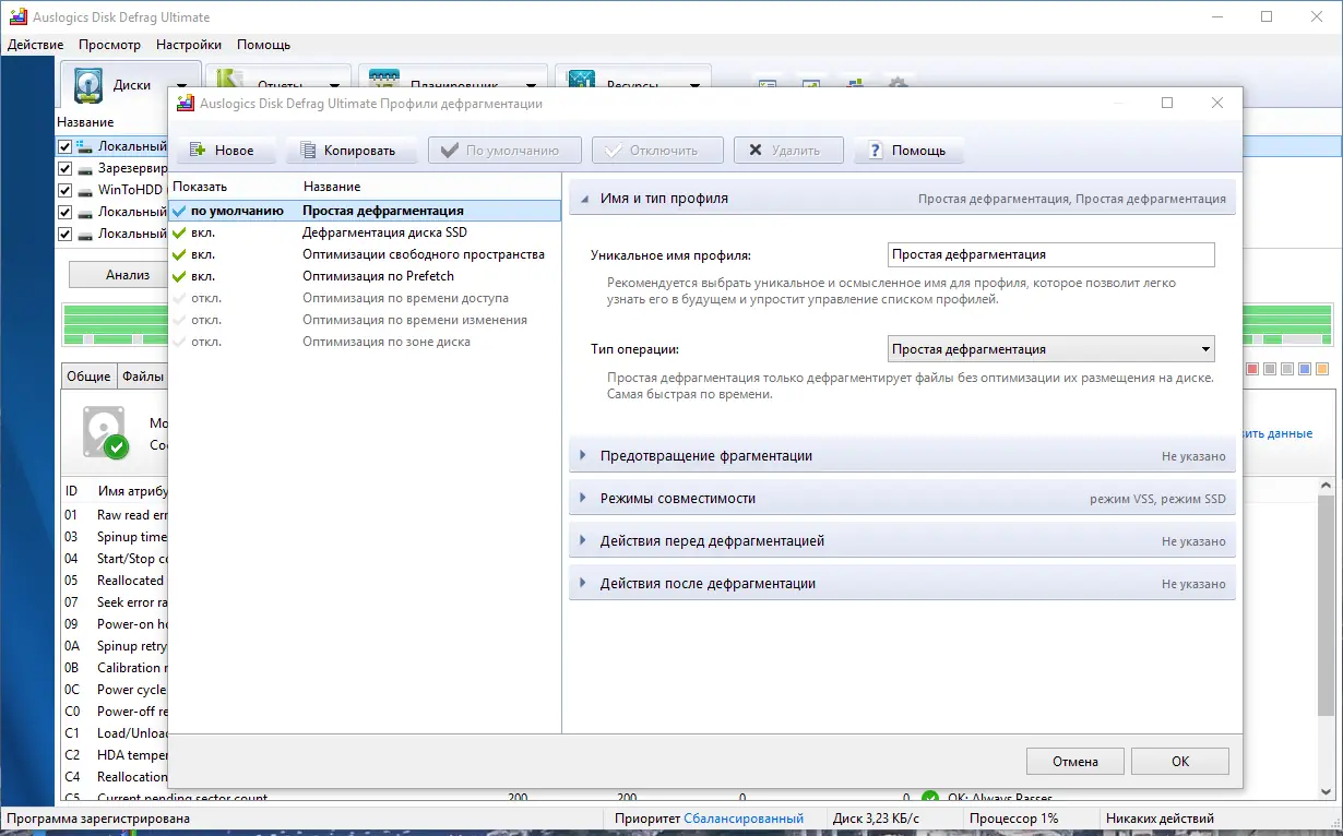- Автоматическое планирование задач для постоянной поддержки оптимального состояния дисков.