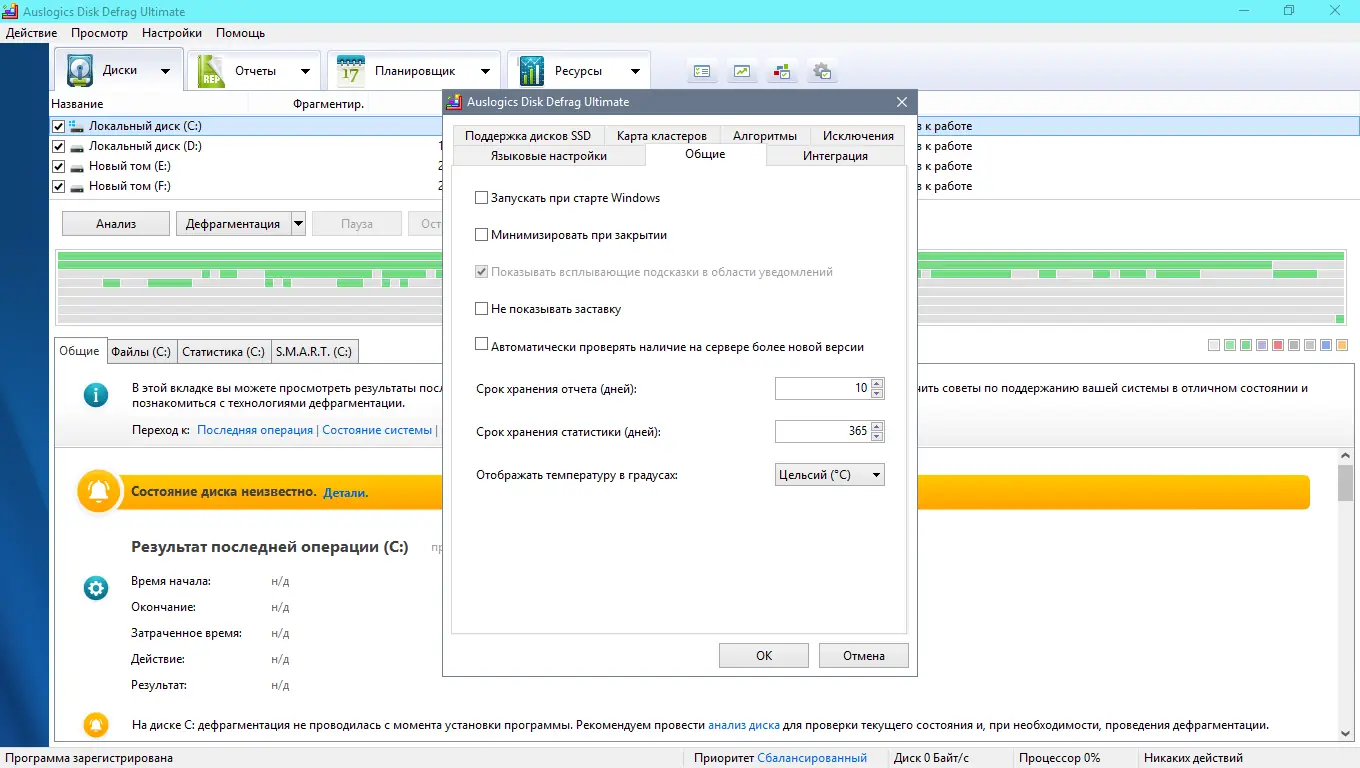 Работа с AusLogics Disk Defrag