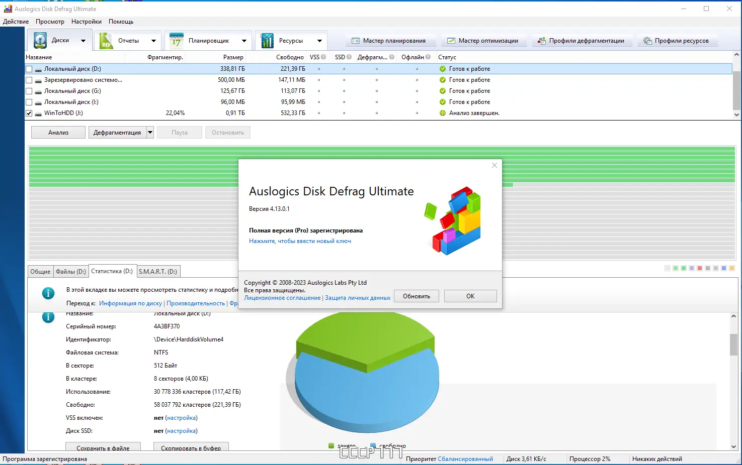 AusLogics Disk Defrag — это мощная утилита для дефрагментации и оптимизации жестких дисков, совместимая с файловыми системами FAT 16/32 и NTFS. Программа ускоряет работу системы, упорядочивает данные на диске и продлевает срок службы накопителей за счёт снижения механической нагрузки. Её алгоритмы эффективно справляются с фрагментацией, улучшая производительность Windows и приложений без необходимости в апгрейде оборудования.