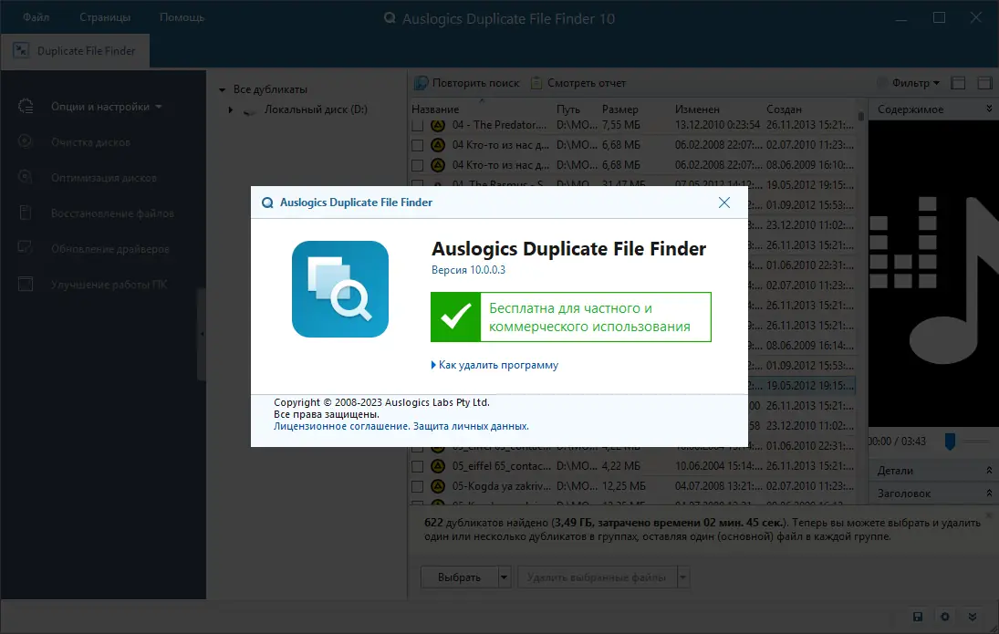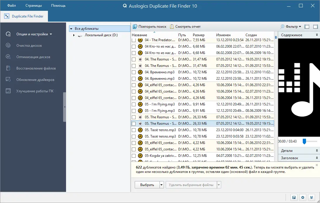 Описание Auslogics Duplicate File Finder