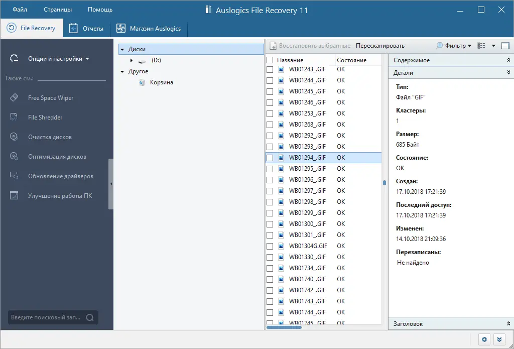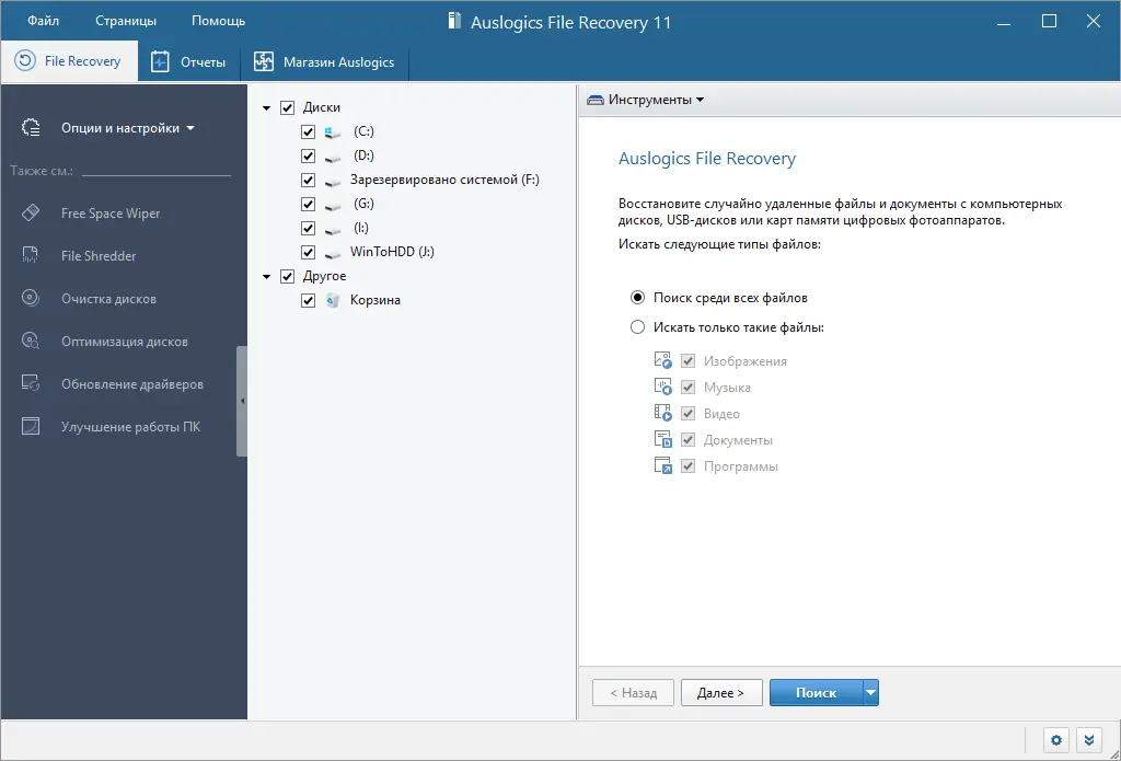 Auslogics File Recovery — это надежное решение для восстановления утерянных файлов, работающее с различными типами носителей и позволяющее вернуть данные, удалённые случайно, в результате сбоев или атак вирусов. Программа предлагает интуитивный интерфейс, расширенные параметры поиска и безопасное удаление информации.
