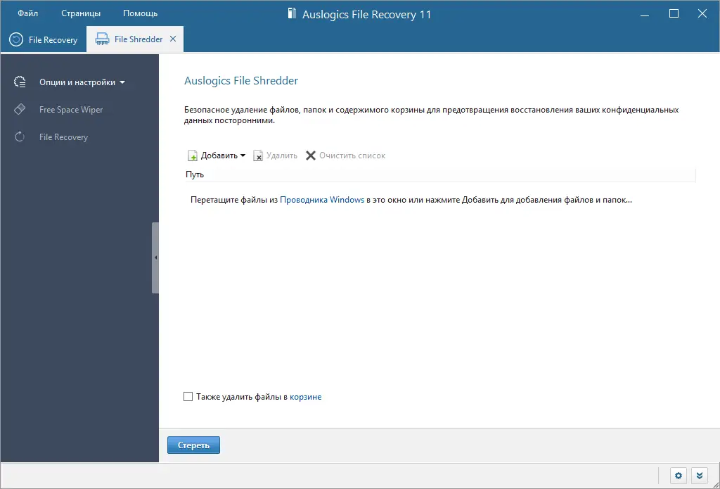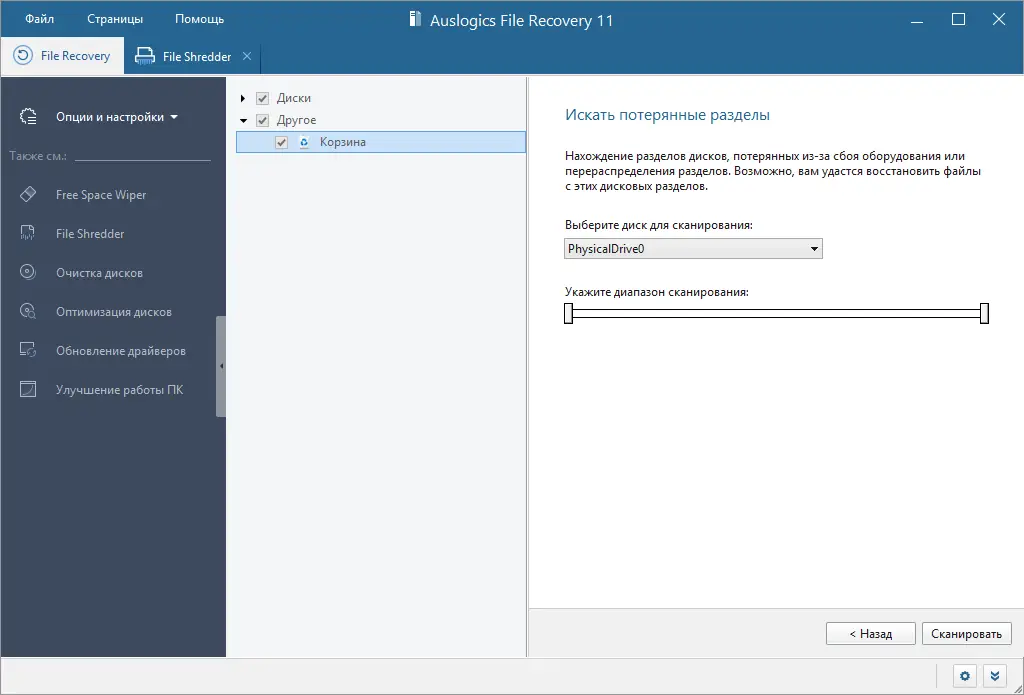 Работа с Auslogics File Recovery