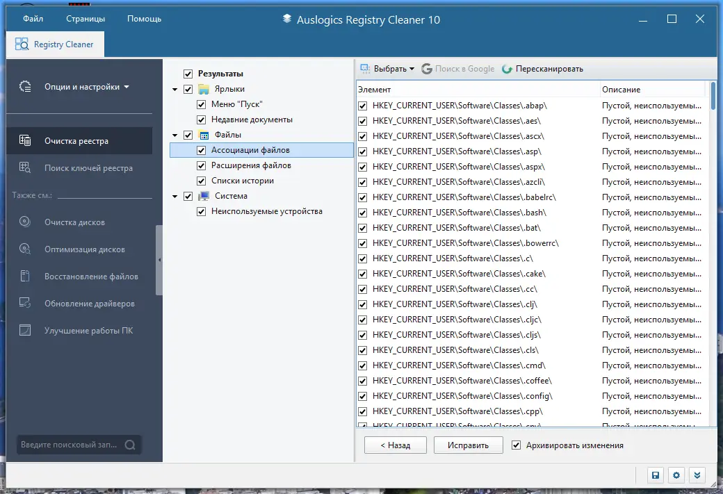 - Очистка ненужных записей способствует ускорению работы компьютера и повышению отзывчивости интерфейса.