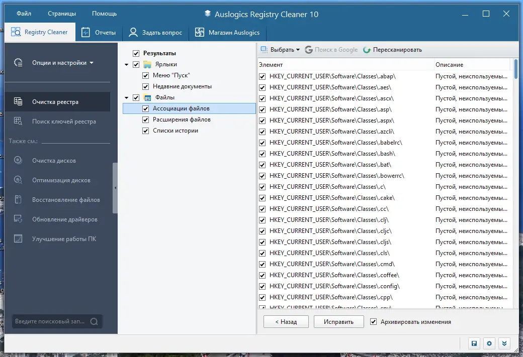Описание Auslogics Registry Cleaner