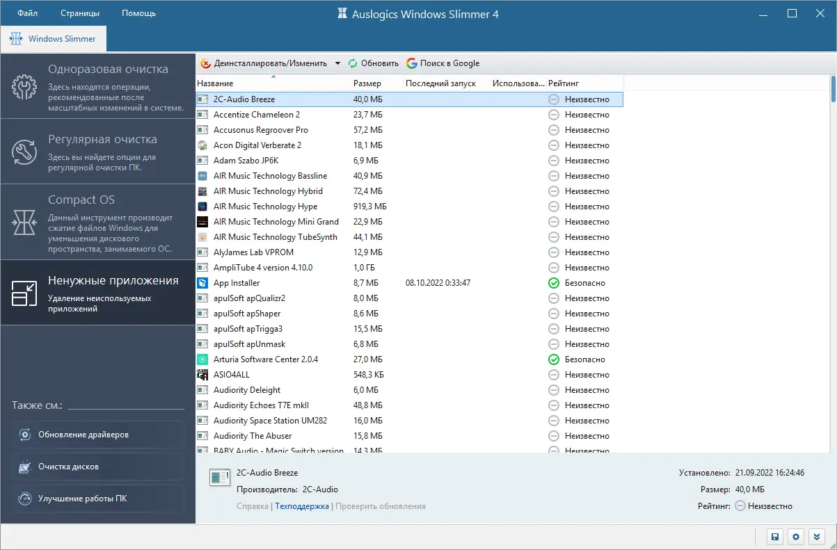 - Требует внимательного подхода при выборе компонентов для удаления, особенно новичкам