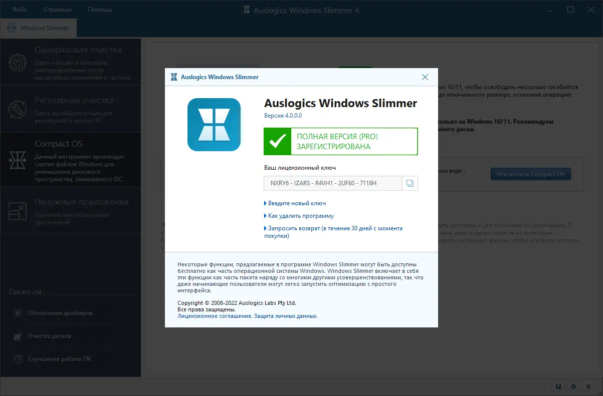 Auslogics Windows Slimmer — это инструмент для тонкой настройки и сжатия операционной системы Windows, позволяющий освободить место на диске и повысить общую отзывчивость компьютера. Программа удаляет ненужные компоненты, деинсталлирует встроенные приложения и оптимизирует системные параметры. Решение подходит как для домашних пользователей, так и для системных администраторов, стремящихся к эффективному использованию ресурсов.