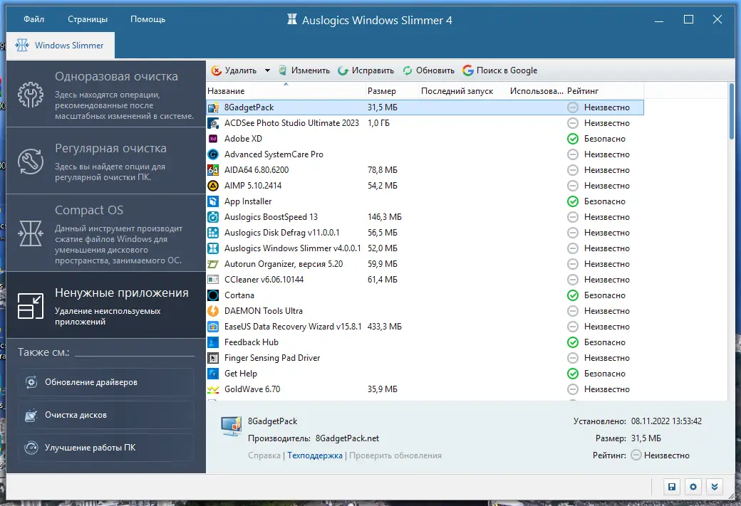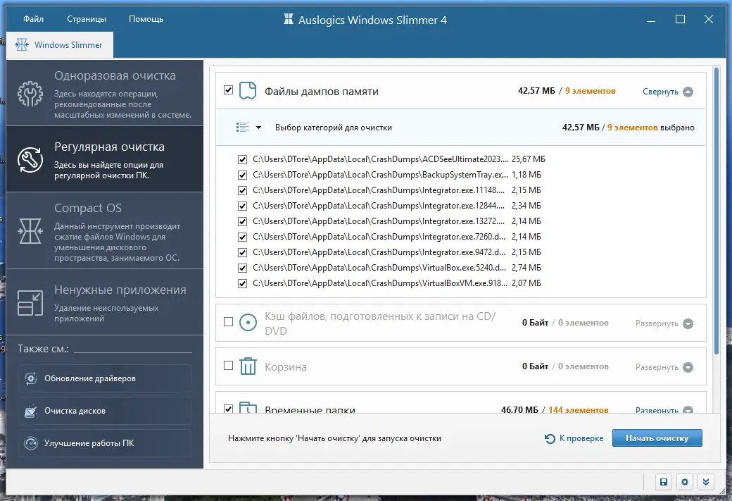 Программа помогает не только освободить место на диске, но и улучшить общую отзывчивость системы.
