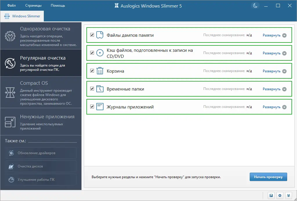 Работа с Auslogics Windows Slimmer