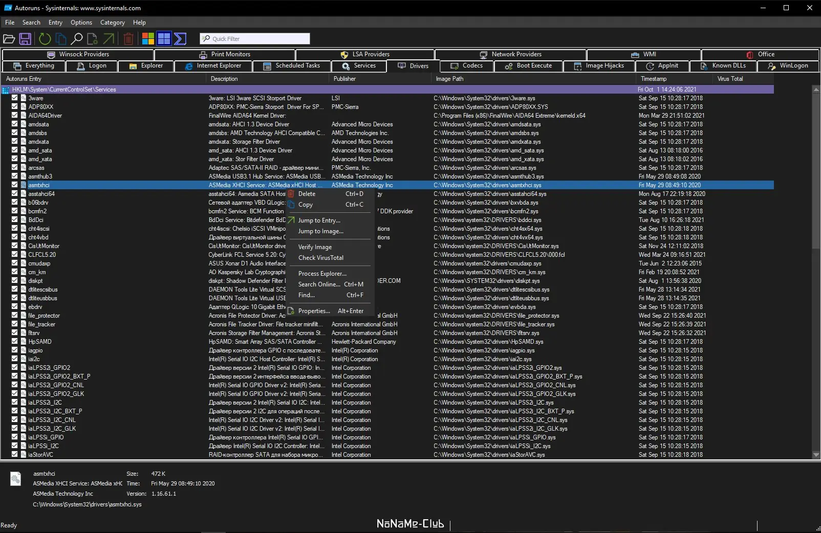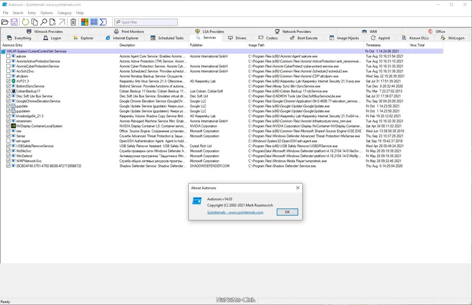 - Отображает все точки автозапуска, включая реестр, службы, планировщик заданий и расширения проводника