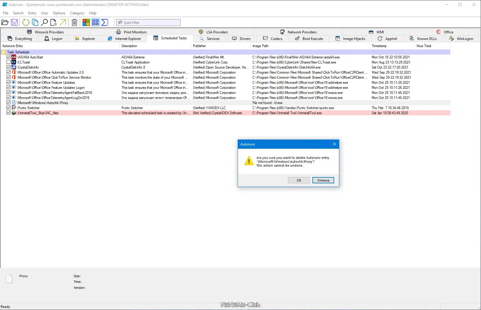 Работа с AutoRuns