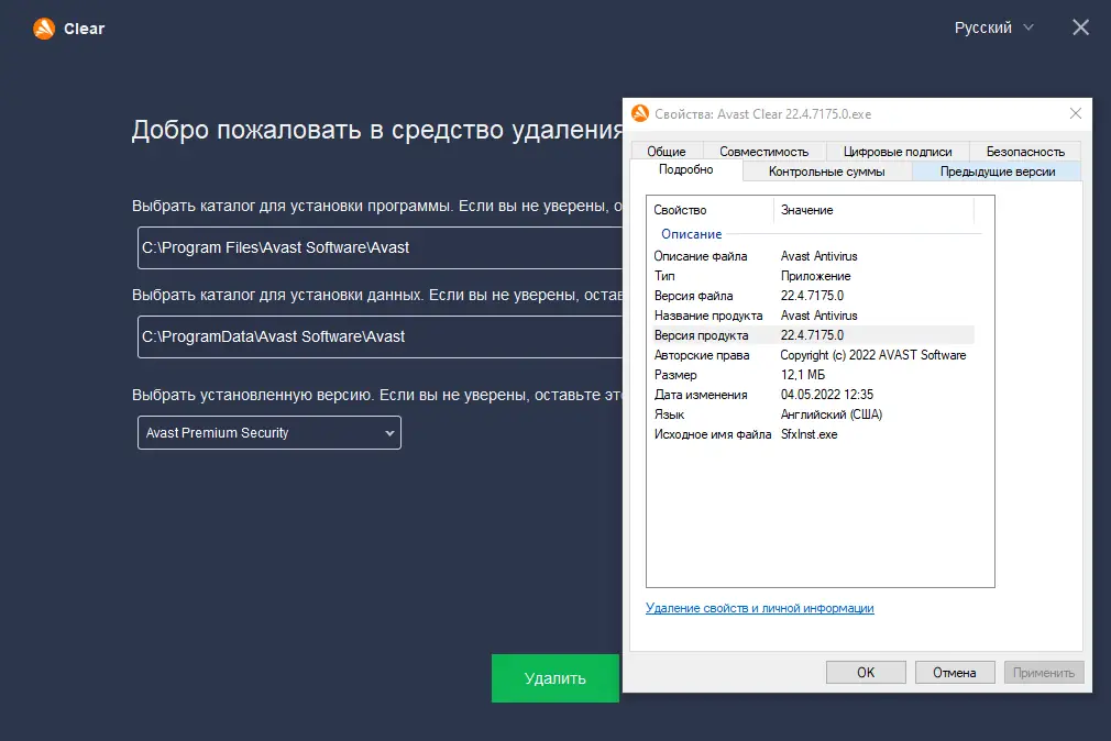 - Эффективное удаление всех компонентов Avast, включая скрытые процессы