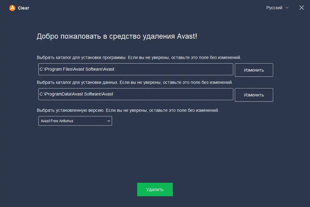 - Удаление всех компонентов Avast, включая драйверы и службы