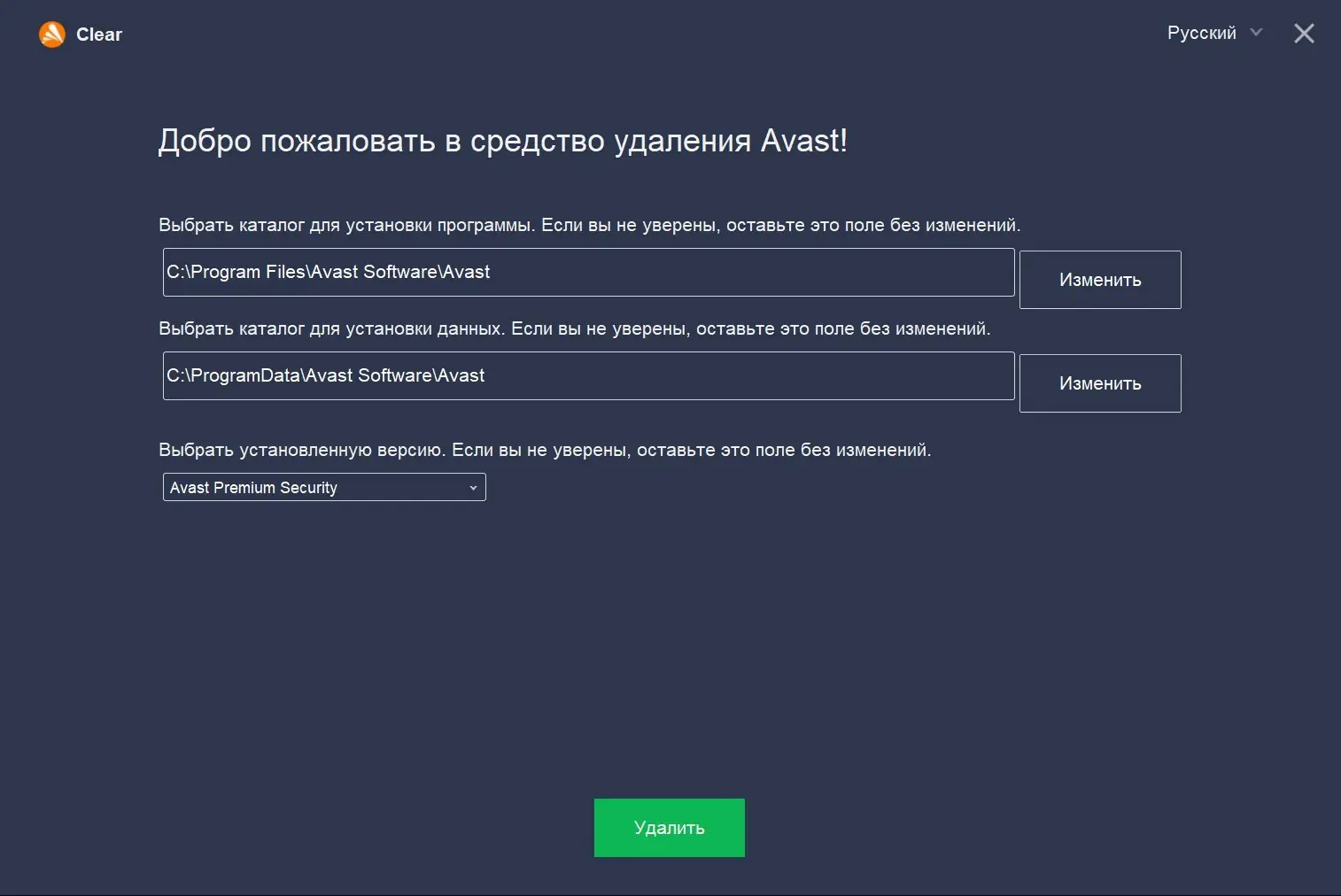 - Позволяет выполнить принудительное удаление всех версий Avast, включая Free и Premium Security.