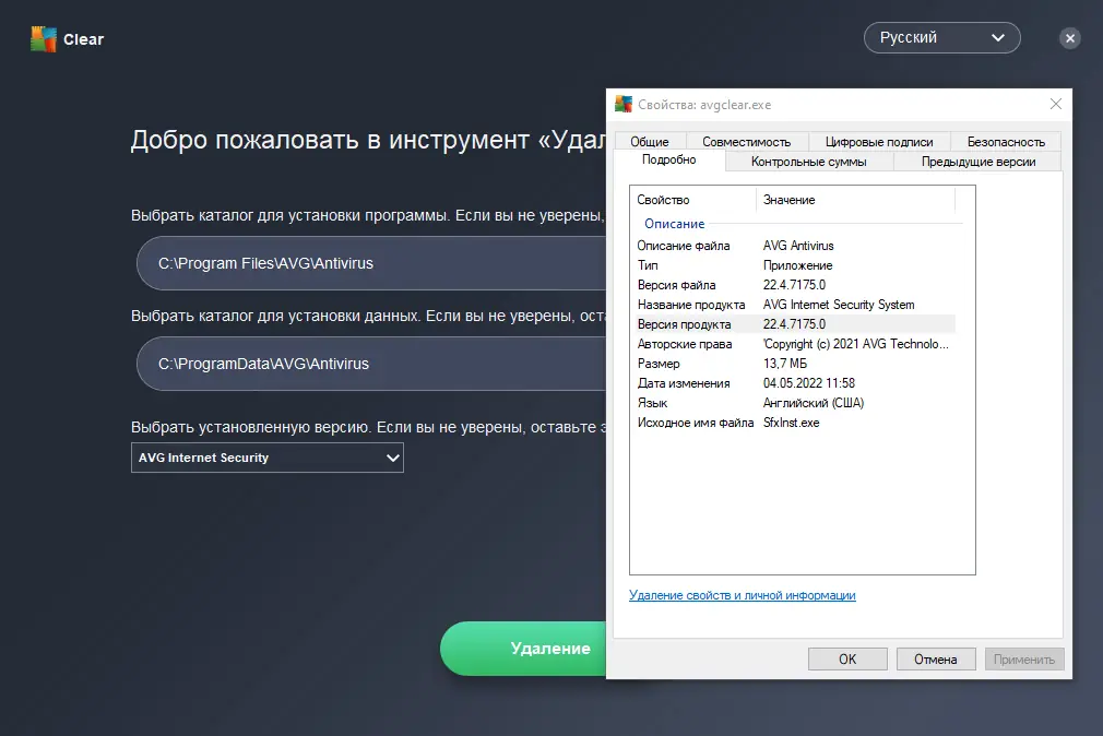 - Гарантированное удаление всех следов AVG, включая службы и драйверы