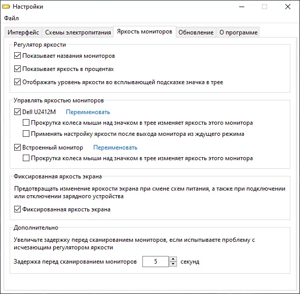 - Управление яркостью встроенных и внешних мониторов через единый интерфейс.