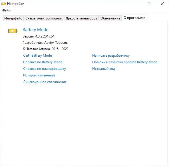 Battery Mode — это утилита для Windows, заменяющая стандартный индикатор батареи на более информативный и стильный, а также предоставляющая расширенное управление яркостью экрана и режимами энергопотребления. Программа интегрируется в систему, не нагружая ресурсы, и позволяет быстро переключаться между профилями питания, настраивать подсветку мониторов и автоматизировать действия через встроенный планировщик. Интерфейс интуитивно понятен, а поддержка горячих клавиш и командной строки делает её удобной как для обычных пользователей, так и для продвинутых.