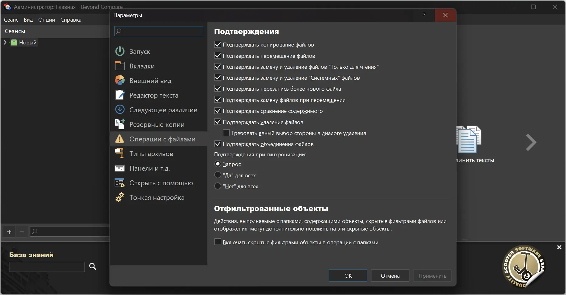 - Гибкая настройка правил сравнения, включая сопоставление файлов по расширению
