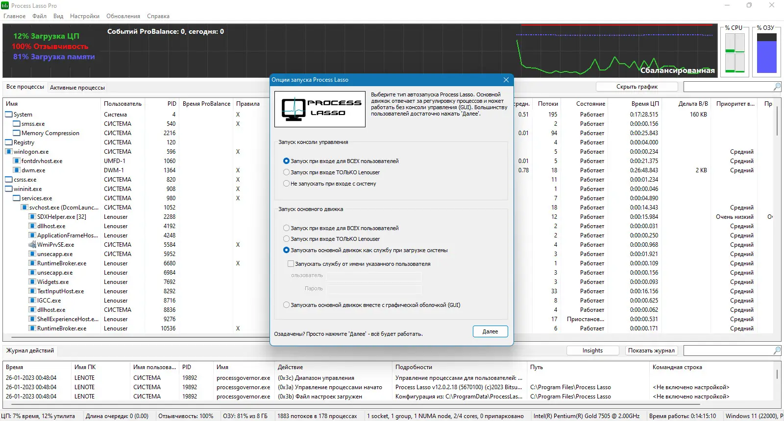 Описание Bitsum Process Lasso